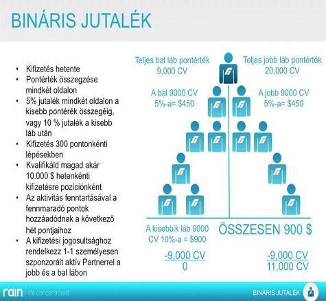 A rendszer hibrid-bináris jellege lehetővé teszi a gyors növekedést és az igazi csapatmunkát, emellett biztosítja a folyamatos aktív és passzív bevételt. Ebben a struktúrában lefelé építkezünk és ezért folyamatosan támogatjuk, segítjük és motiváljuk a csapatunkban lévő partnereket.